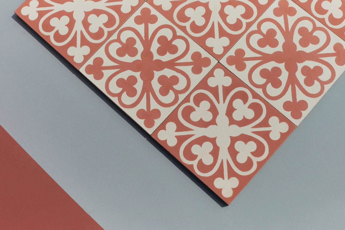 - D'altro canto, ci sono motivi iconici del XIX secolo con colori a volte vivaci, che abbiamo ammorbidito lavorando con palette pastello per un risultato moderno, elegante e rilassante. Pur mantenendo il motivo storico delle piastrelle di cemento, questi colori tenui si fondono perfettamente con un arredamento in stile scandinavo con toni bianchi e beige.